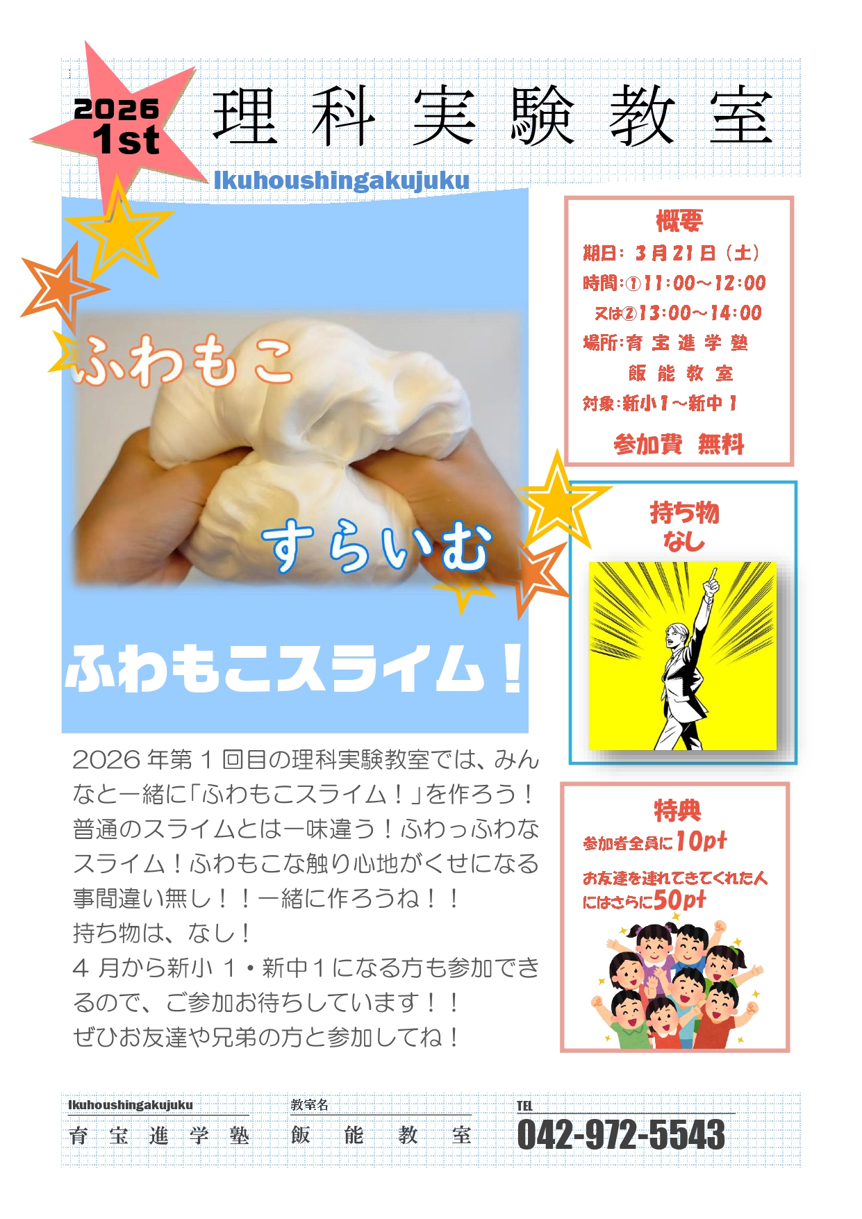小学生イベント「ふわもこスライム!」3月21日(土)