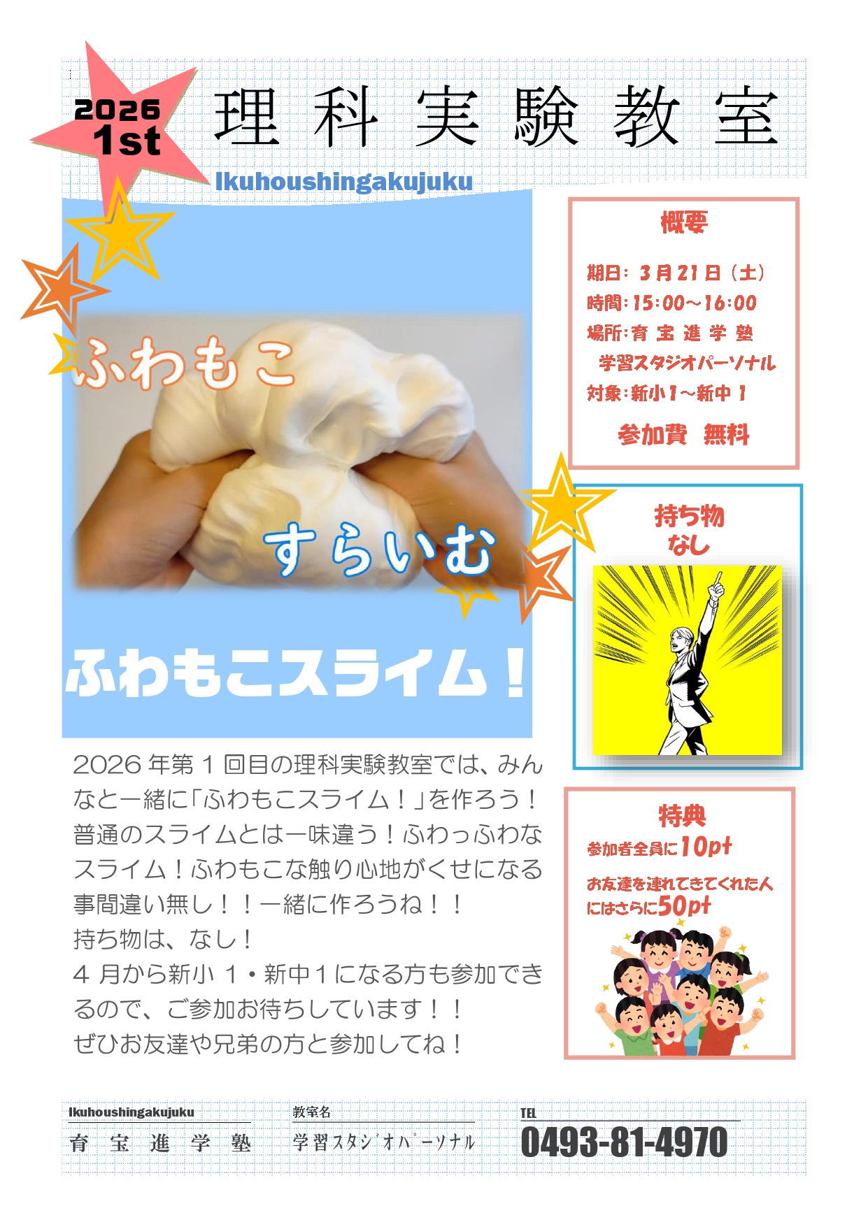 🌷小学生イベント 「ふわもこスライム」🌷 飯能市・入間市・小川町の【育宝進学塾】