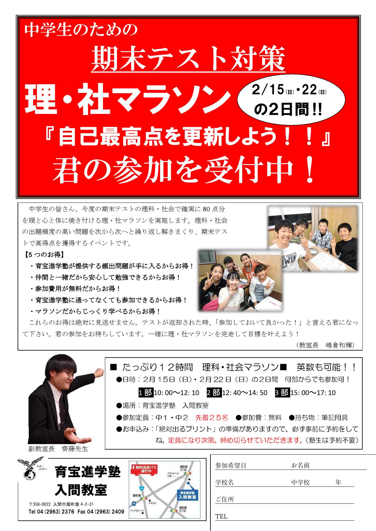 3学期期末理社マラソン 育宝進学塾 入間教室