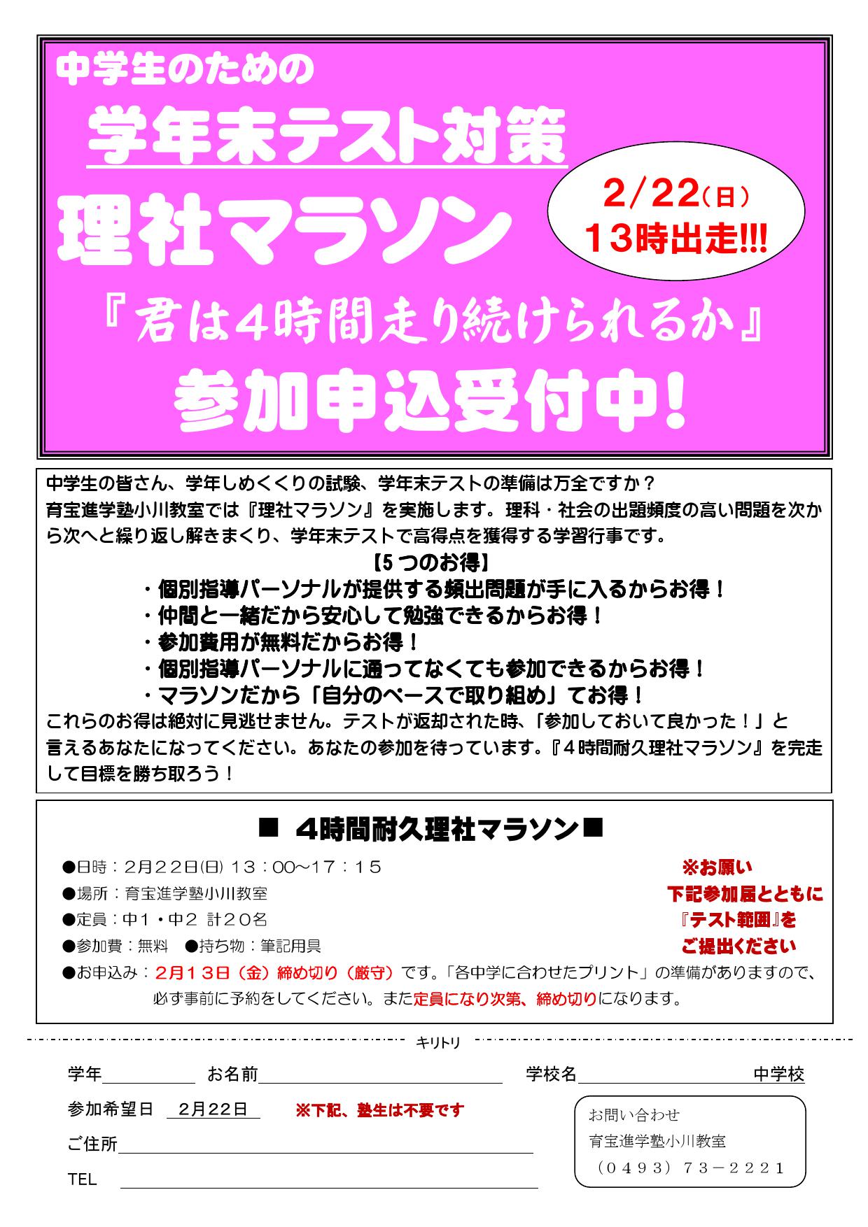 ぜひ、理社マラソンに参加して、成績アップをめざそう!