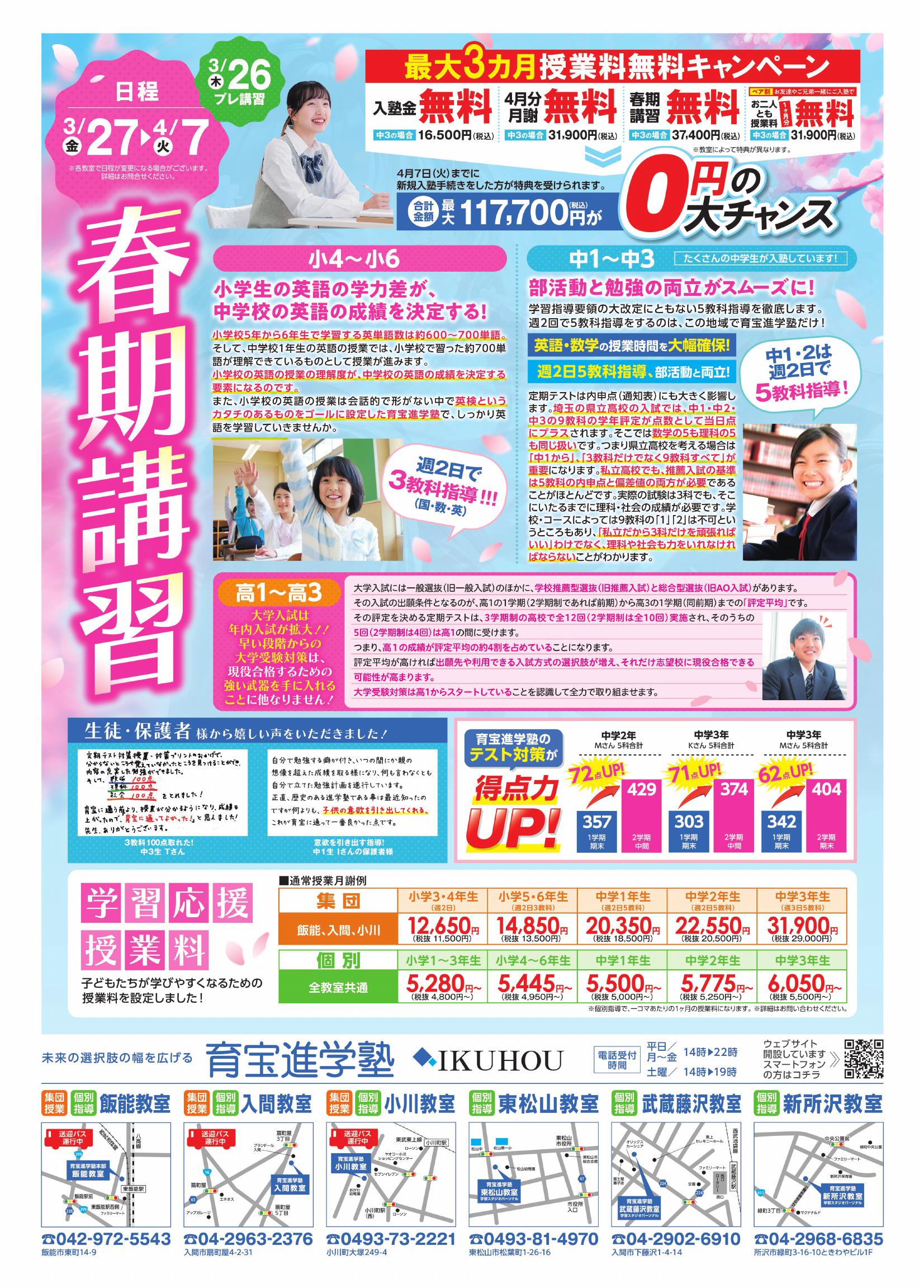 ③個別指導の方は 春期講習4コマ分無料